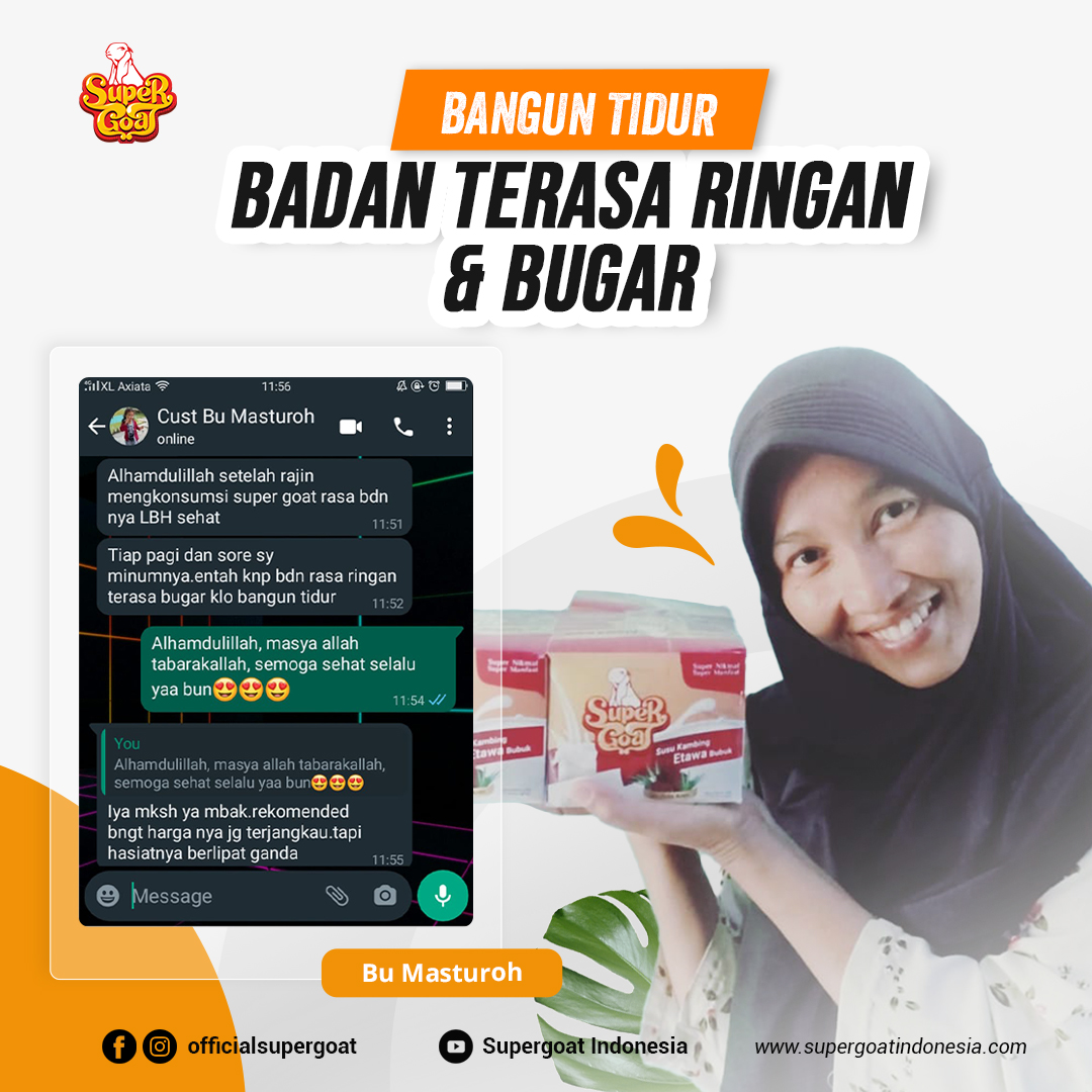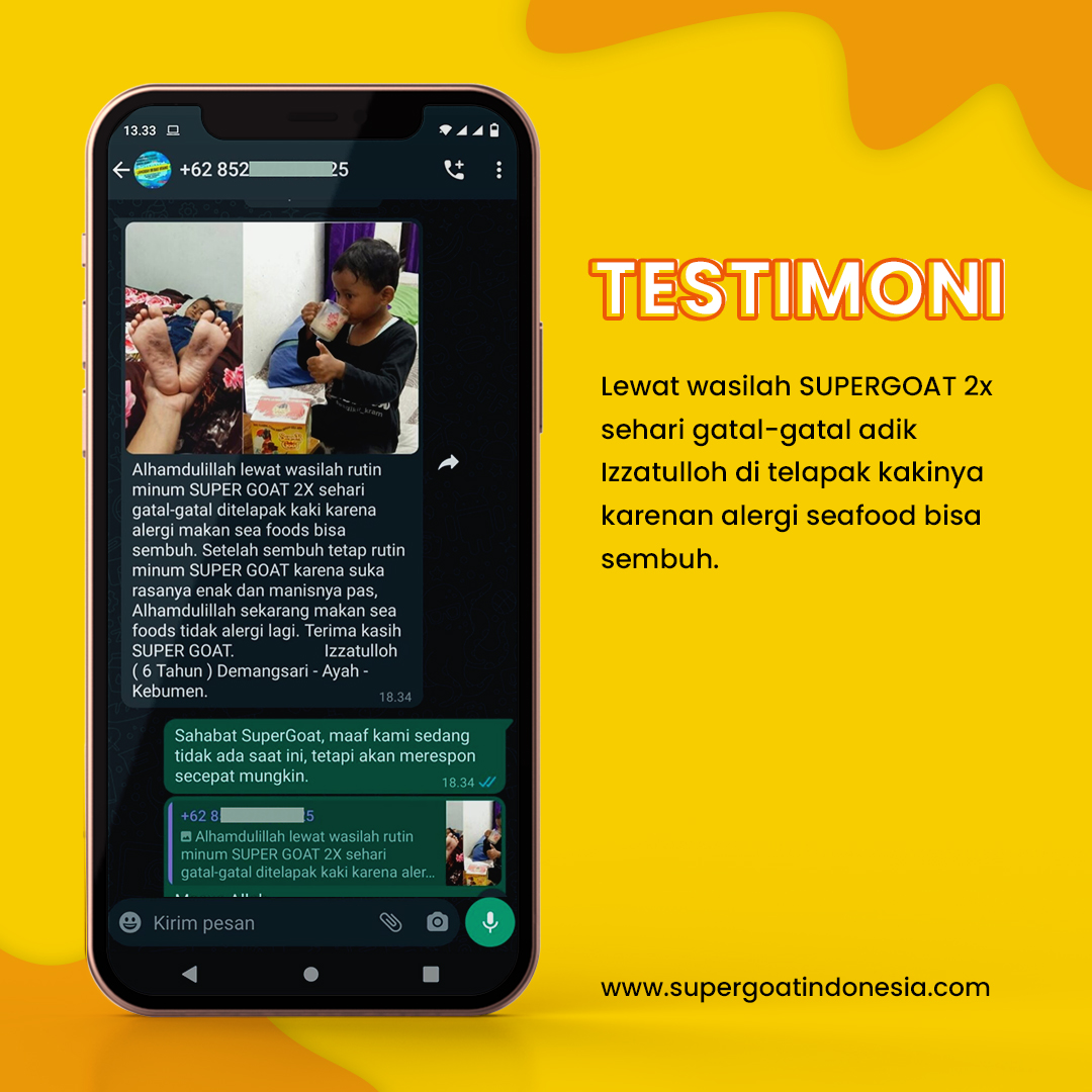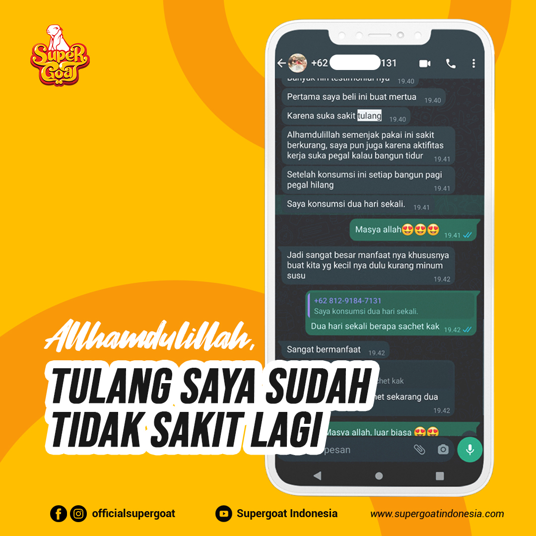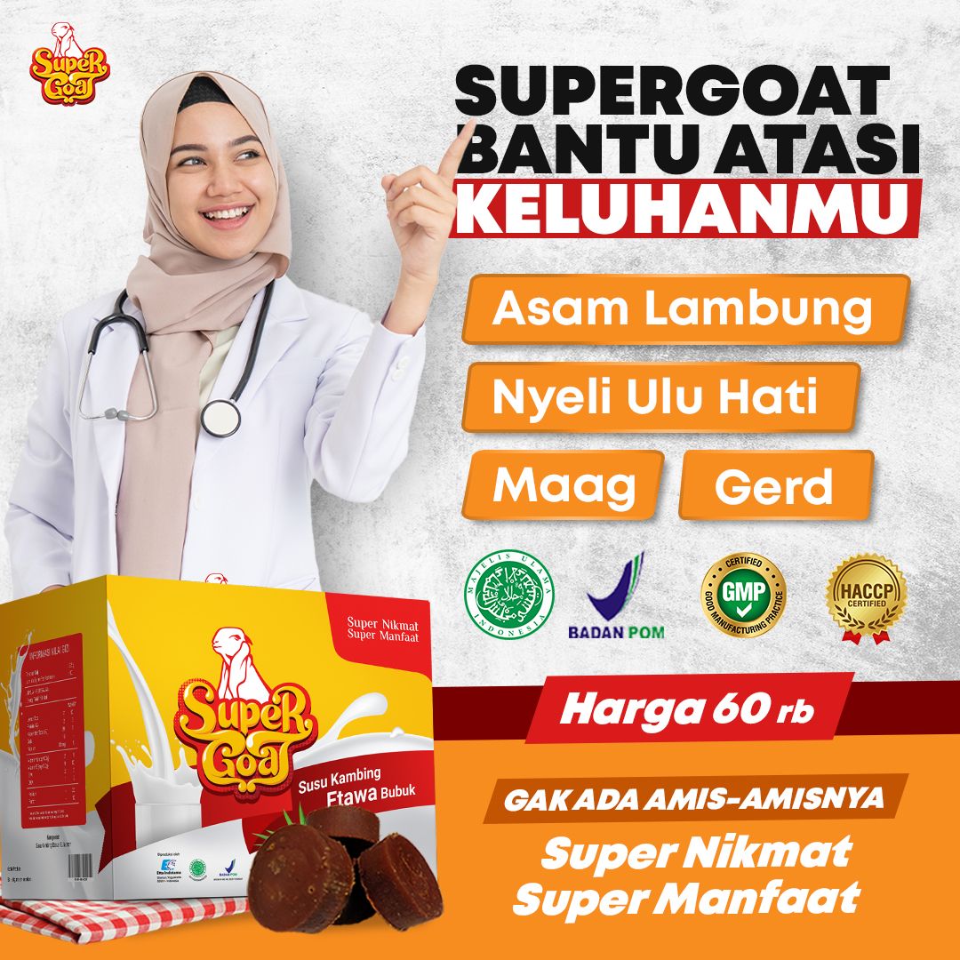 Supergoat dapat membantu terapi penyembuhan lebih dari 20 jenis penyakit. Informasi dari pelanggan dari waktu ke waktu, manfaat Supergoat untuk kesehatan semakin luas dirasakan 10.000 pelanggan setiap bulannya.